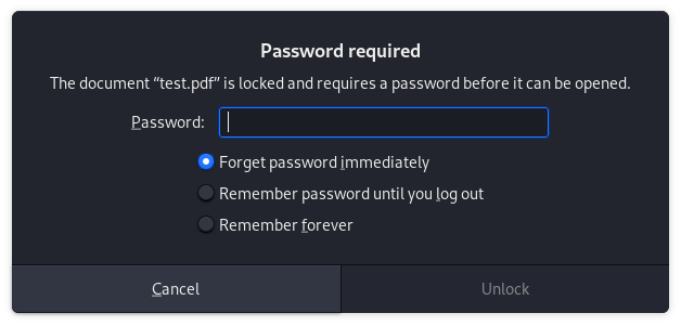 $ pdftk test1.pdf output locked_test1.pdf user_pw PROMPT