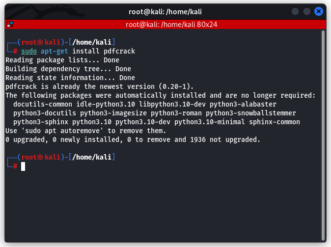 In this article, we’ll use a program called “PDFCrack” for password cracking. We’re going to install it on our hacking OS (Operating system), Kali Linux. Kali is what I use. You might be on a different OS, that’s fine. The process of installing it on Kali, is quite similar for all other Unix based OS’s. PDFCrack works on other OS’s too. Feel free to do research on how to get it on your OS. However, in this article, I’m going to show you how to get it and work with it on Kali as this is the preferred hacking OS in the security community.