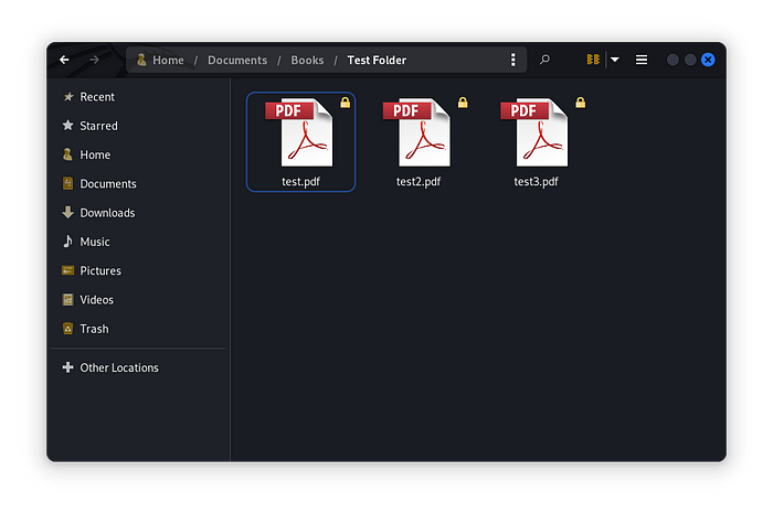 In the above image, we can see three PDFs. We also see that they all have lock icons. This indicates that these PDFs are password protected. We’ll attempt to crack them!