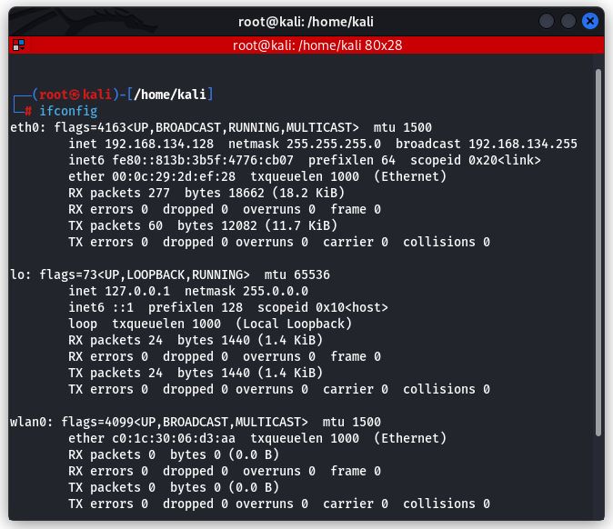 As you can see, there are three interfaces listed. eth0, lo and wlan0
