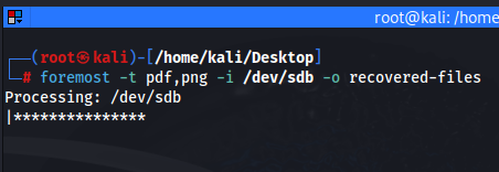So basically, it searches for and recovers PDF and PNG files from /dev/sdb and saves them in the recovered-files directory.