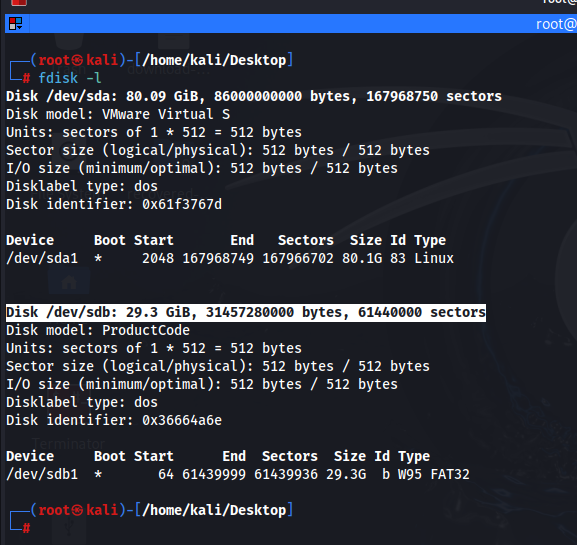 2. /dev/sdb: A 29.3 GB disk with a single FAT32 partition (/dev/sdb1). This is my Flash drive.